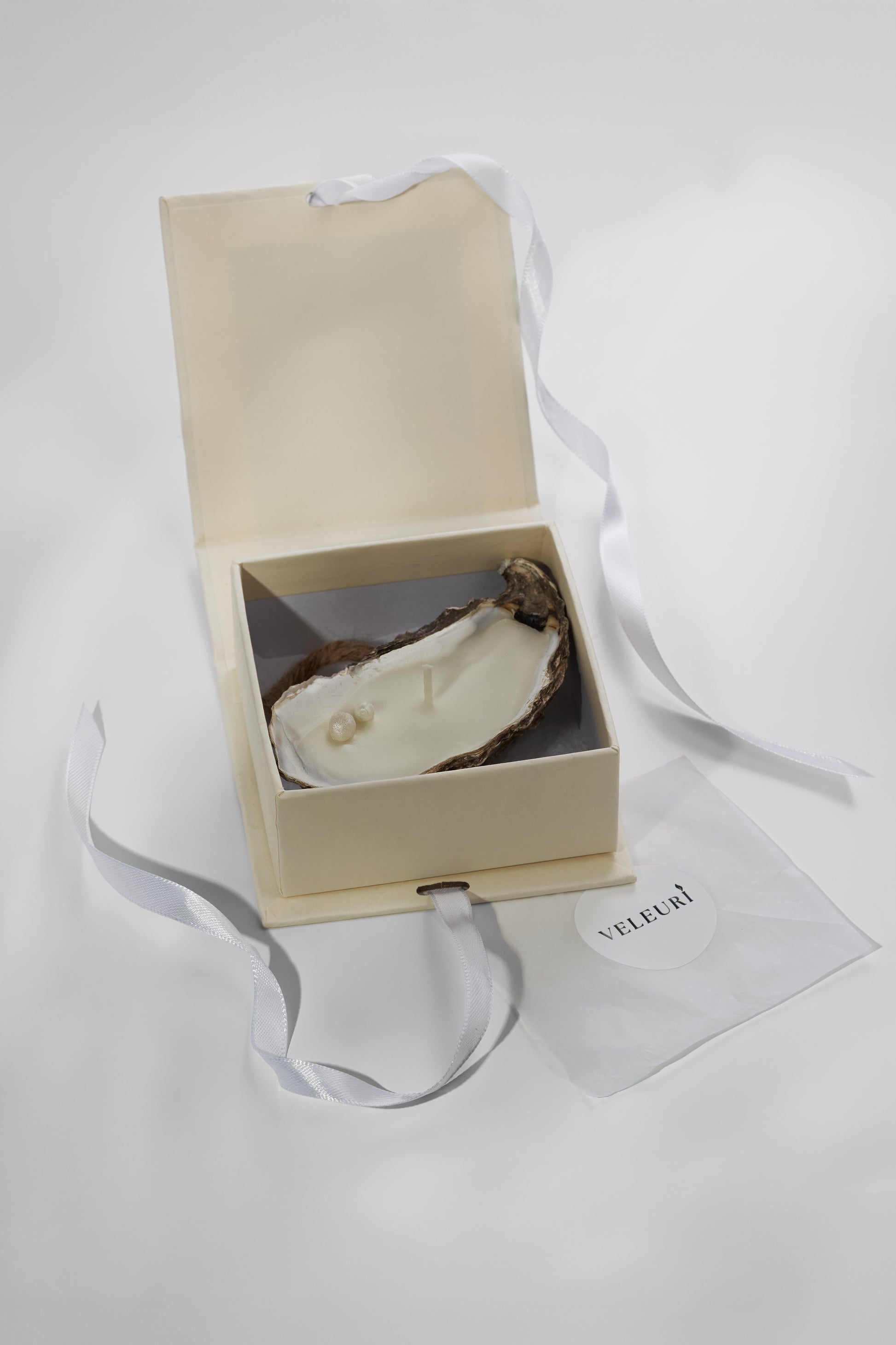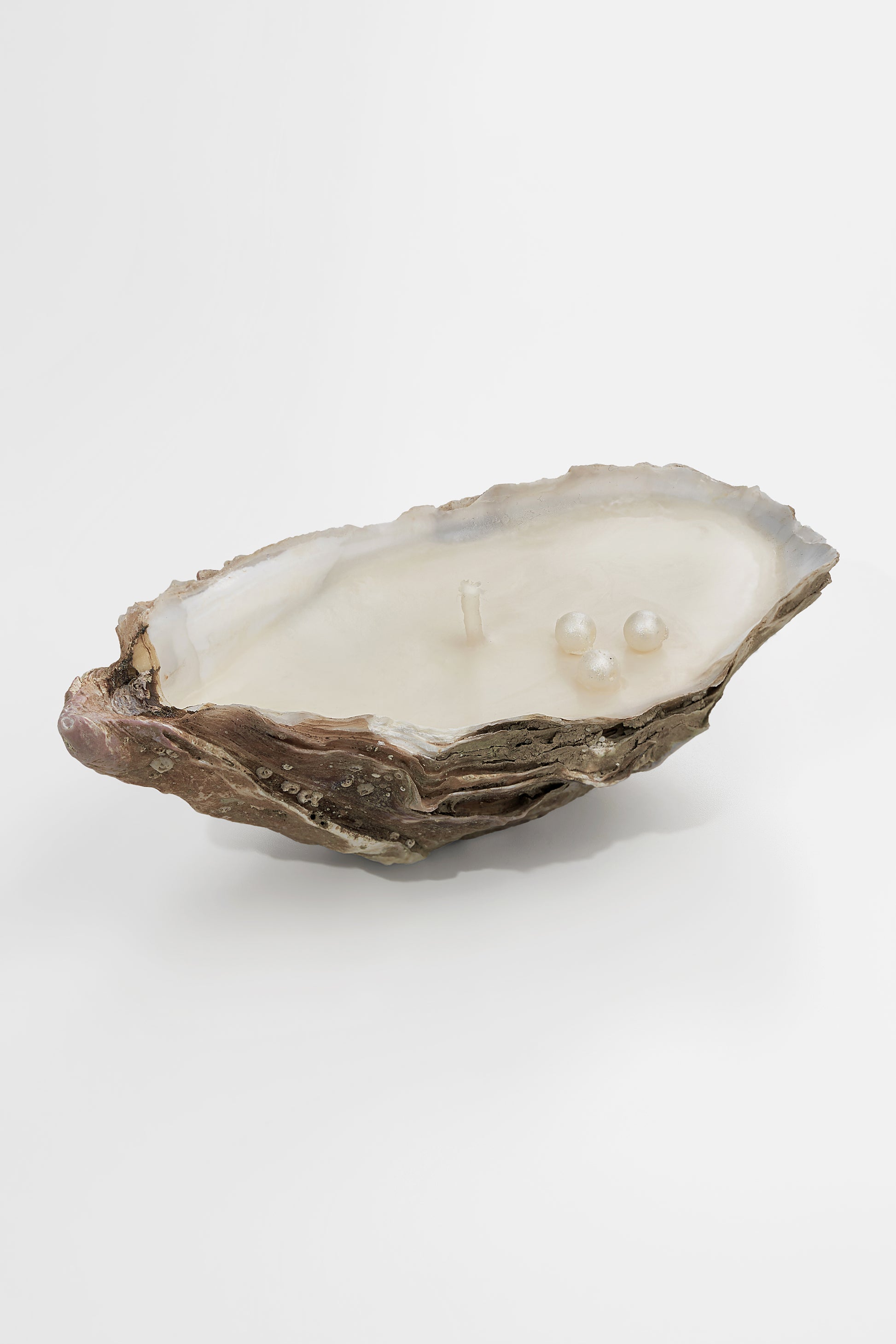 A hand-poured oyster shell candle inspired by coastal elegance.